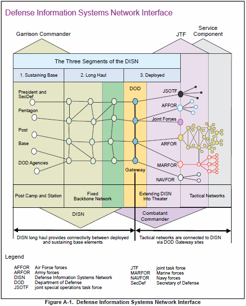 The Defense Information Systems Network (DISN), managed by Defense Information Systems Agency (DISA), serves as the DODIN backbone (Figure 3). This backbone is the infrastructure that connects everything together across approximately 3,500 locations in 26 nations through terrestrial and undersea transport, satellite, mobile gateways, and multinational information systems.