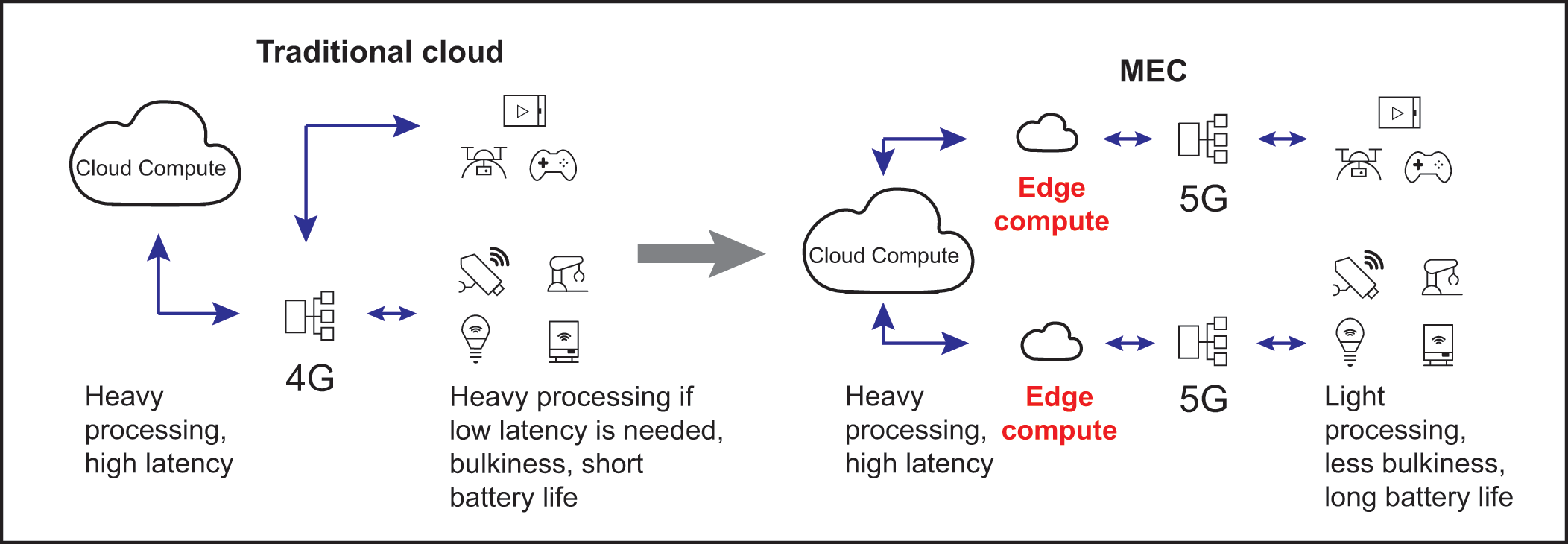 Figure 2: Traditional cloud network vs multi-access edge computing (MEC)